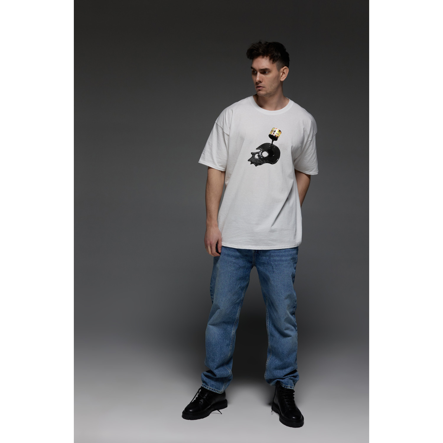 Футболка Aspirine Oversize чоловіча біла "Арт череп"