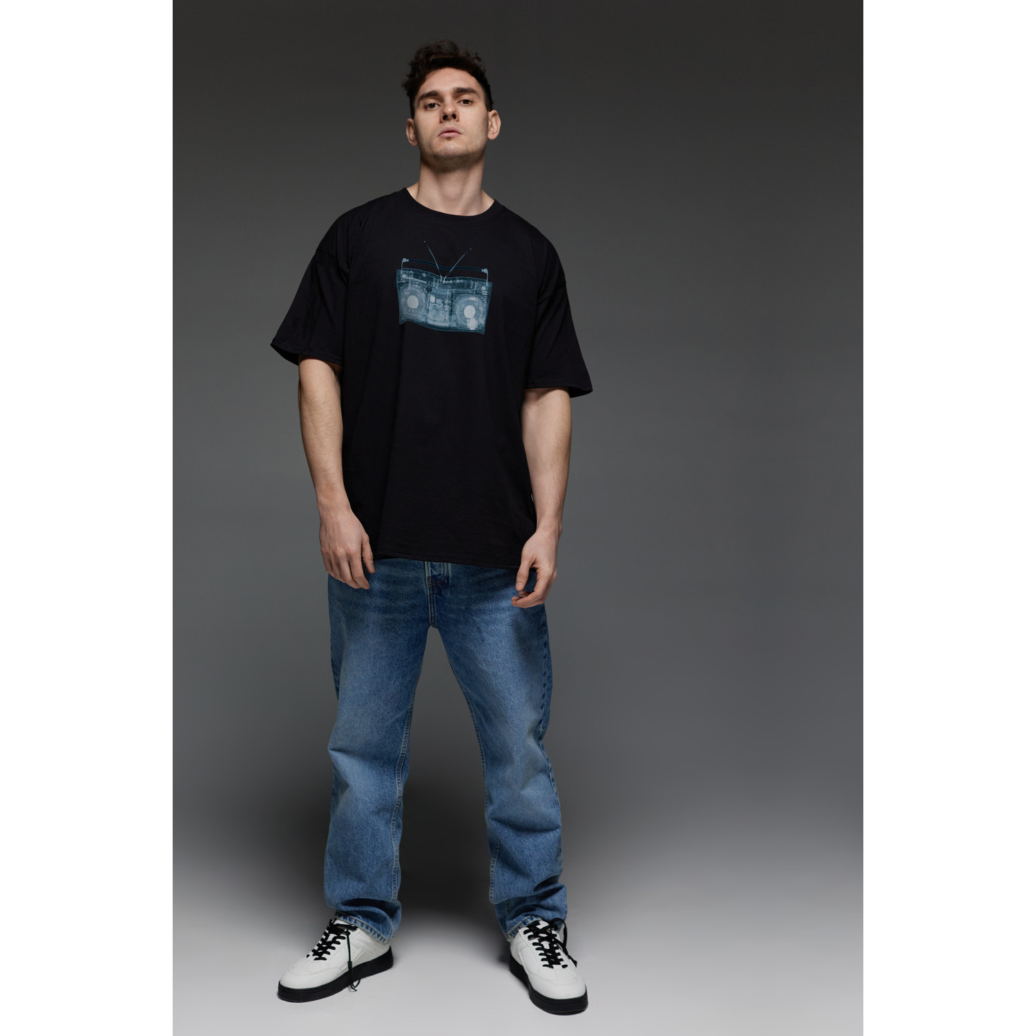 Футболка Aspirine Oversize чоловіча чорна "Ренген музики"